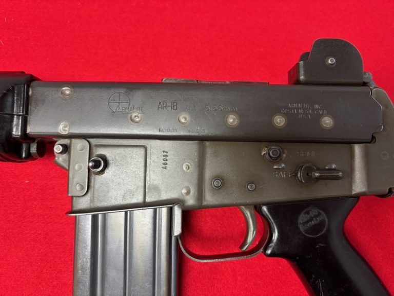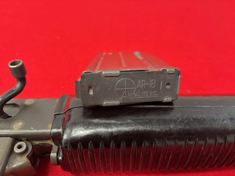 An excellent example of an original and very scarce fully-automatic Armalite AR-18 rifle manufactured by Armalite in Costa Mesa, California. Designed after Armalite had sold their interest in (and patents for) the AR-15 rifle, the AR-18. Somewhat infamously, some of the most prominent users of the Armalite were on both sides of "The Troubles" in Ireland, being adopted by both Loyalist militia units and some factions of the Irish Republican Army, the latter embracing the arm to the point of it being the namesake of the "Armalite and Ballot Box Strategy" of the late 1980s. Post front and adjustable two leaf peep rear sights, with a three-prong flash hider, maker's marks on the upper receiver, and the ambidextrous three position selector on the lower Form 3