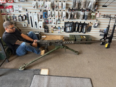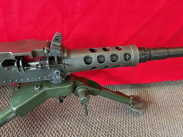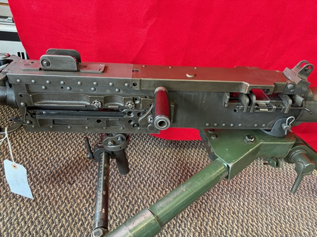 Exceptional 50 Caliber transferable machine by Group Industries with FN parts. Includes 1000 rounds of ammo. Email for a video of test firing. The Browning M2HB, affectionately referred to in military circles as “Ma Duece” is another evolution of the successful John Browning designed, recoil operated & belt fed guns that populated the battlefields following WWI.