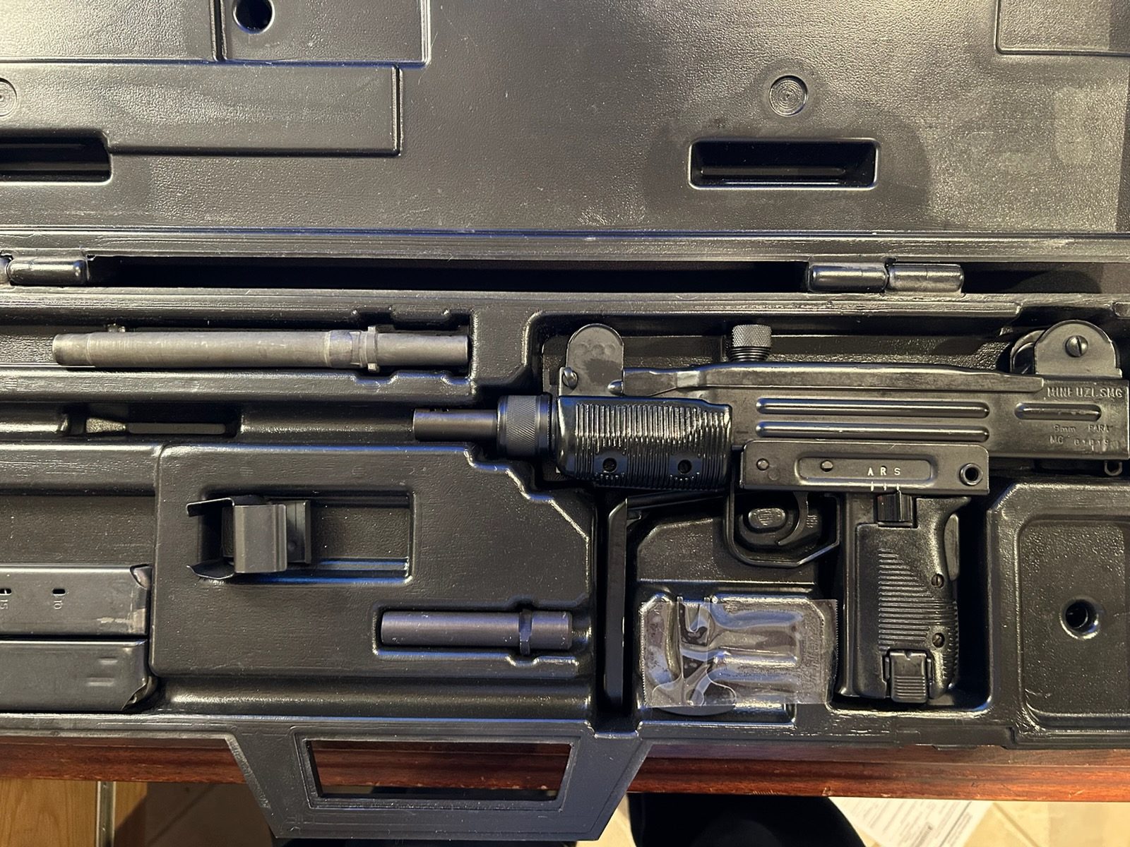 Mini UZI 9MM SMG. Registered Fleming Sear. The host pistol for this machine gun is an original Israeli manufactured IMI Mini Uzi 9mm pistol that was imported into the US by Action Arms of Philadelphia, PA. This transferable machine gun also sports an original Israeli right side folding Uzi SMG stock and the correctly ported Uzi SMG barrel. New in box. Test fired only. FORM3 . Call 570-592-2171 for details.